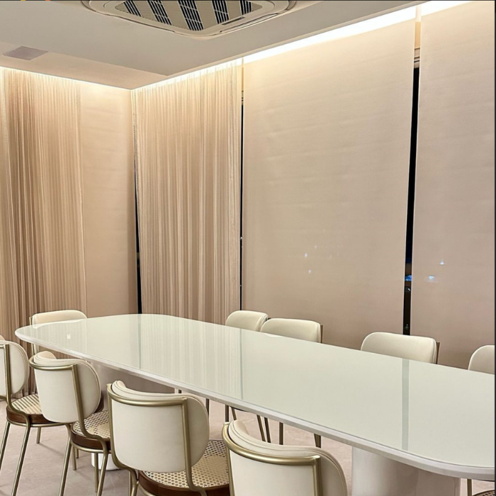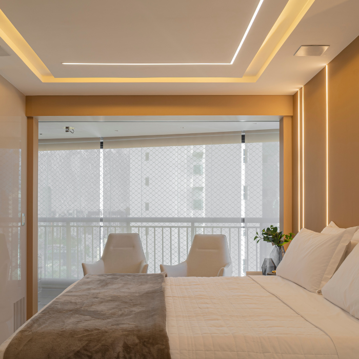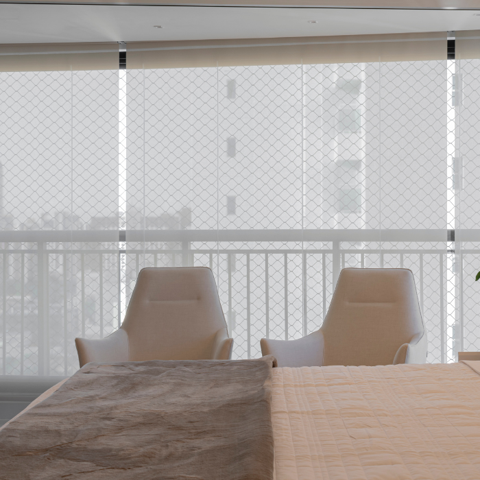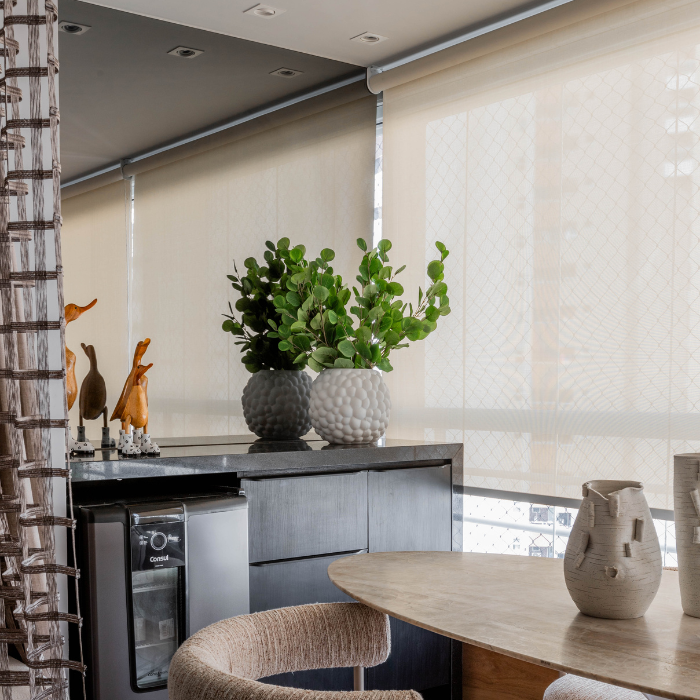 Cortina com design moderno, clean e contemporâneo composta por única lâmina de tecido. Versatilidade na composição de ambientes, possibilitando utilização de TELAS SOLARES, TECIDOS DECORATIVOS OU BLACKOUTS.