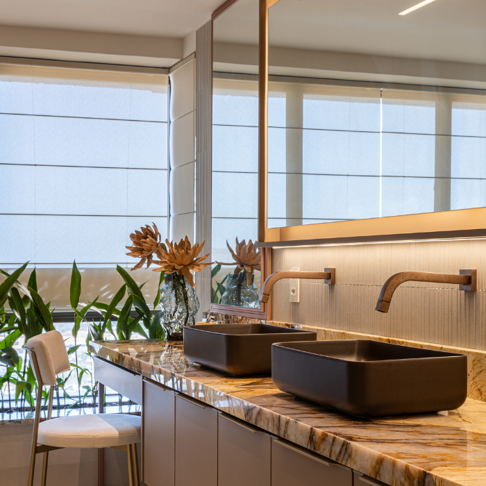 Design contemporâneo com referência ao clássico. Composta por única lâmina de tecido dividida em linhas retas que conferem elegância e sofisticação ao produto. Recolhimento em gomos e pouca fresta lateral. Versatilidade na composição de ambientes, possibilitando utilização de TELAS SOLARES, TECIDOS DECORATIVOS OU BLACKOUTS.